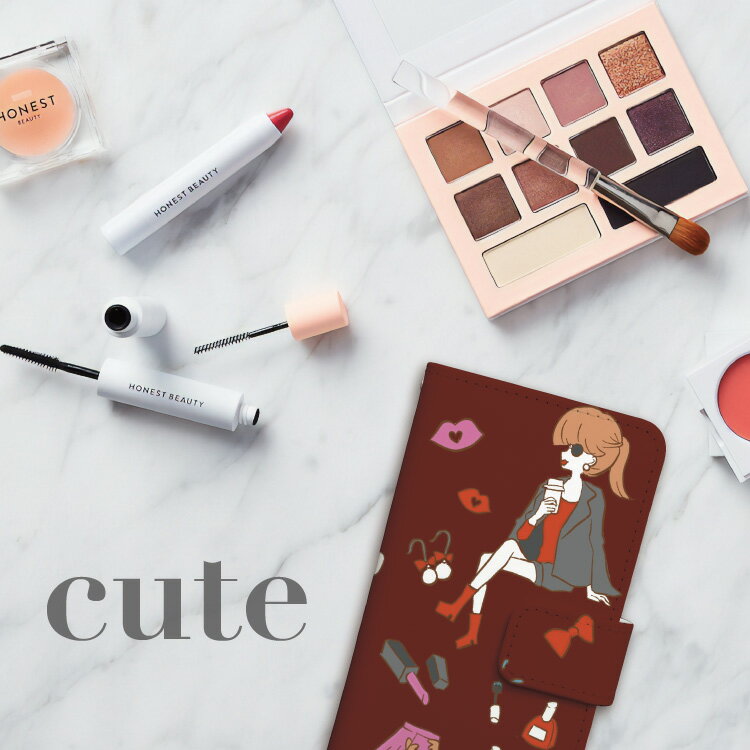 iPhone11 iPhoneXR iPhone8 iPhone7 iPhone6 iPhoneXS iPhoneX iPhone8Plus iPhone7Plus iPhoneSE iPhone6s スマホケース 手帳型 iphoneケース 女の子 化粧品 スカート ピンク イラスト 人気 かわいい アイフォン8 アイフォン7 アイフォン6 ケース ほぼ全機種対応 送料無料