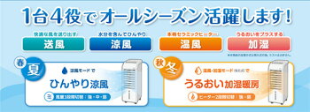 涼しいも暖かいもこれ1台でOK!送風・ひんやり涼風・温風・うるおい加湿暖房の4つの機能を1台にまとめた4in1。
