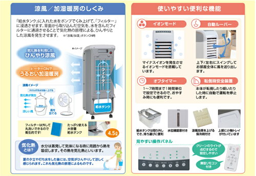 送風・ひんやり涼風・温風・うるおい加湿暖房の 4つの機能を1台にまとめた4in1。